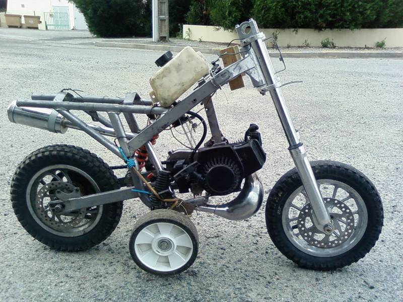 mon ancien mini dirt équipé d'un kit radio de voiture radiocommandée. Rapport poids/puissance excellent sans pilote. Inconvénient : une horreur à contrôler!!! |