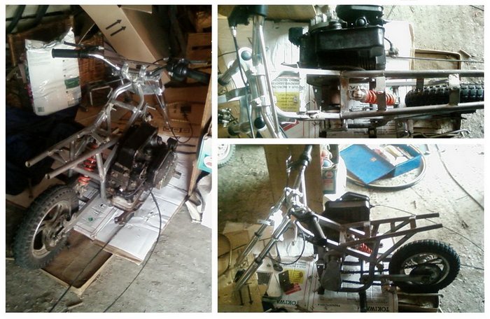 voilà quelques photos d'une autre de mes créations bizarres. Cette pocket est équipée (en option ^^) d'un moteur 150cc 4 temps briggs et stratton de l'ex tondeuse à mon père. Domage que ce soit que du 4 temps...